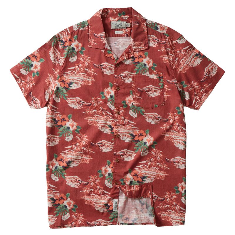 Don this shirt for your best Don Ho! Inspired by the iconic florals of the Hawaiian Islands we are certain you'll be ready to belt out your best "Tiny Bubbles." Light weight slub viscose printed with a retro batik motif. Cut in a classic camp collar, it screams summer.